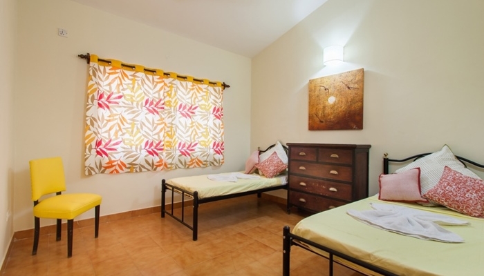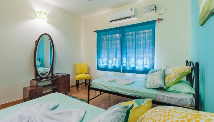 A good compromise if your heart wants a detached beachfront villa but your bank balance insists on something more modest, this duplex villa is a 12 minute walk from sandy Calangute beach. The property has no kitchen so ideal for those who refuse to cook during their holiday. The villa is ideal for a students, a group of friends or someone who wants budget accommodation in Calangute.